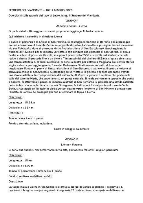 Sentiero del Viandante: da Abbadia Lariana a Varenna | 5/16/2026 | 5/17/2026 | Sponda orientale del lago di Como | ESCUR - Escursionismo | E - Escursionistica | Bigi Virginia | ||